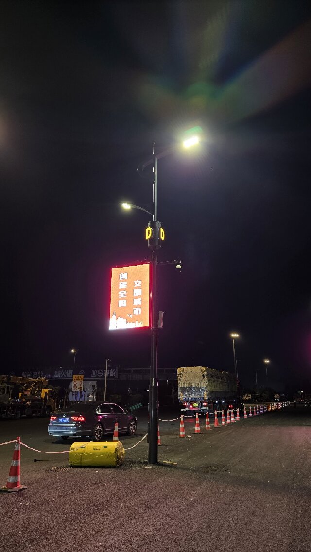 • 多杆合一,功能集成:智慧灯杆集成了LED信息发布屏、高清监控摄像头等多种设备,实现了“一杆多用”,有效整合了服务区的信息发布、安防监控等功能,提升了管理效率。